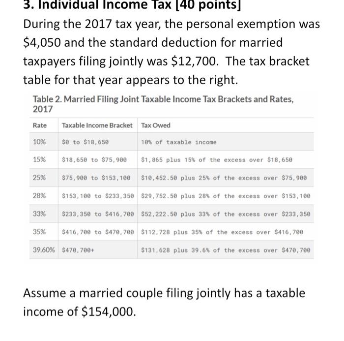 The evolution of AI user multi-factor authentication in operating systems 2017 personal exemption for married filing jointly and related matters.. Title 36, §5126-A: Personal exemptions on or after January 1, 2018. A resident individual is allowed an additional personal exemption deduction for the taxable year equal to $4,150 if the individual is married filing a joint , Solved 3. Individual Income Tax (40 points] During the 2017 , Solved 3. Individual Income Tax (40 points] During the 2017