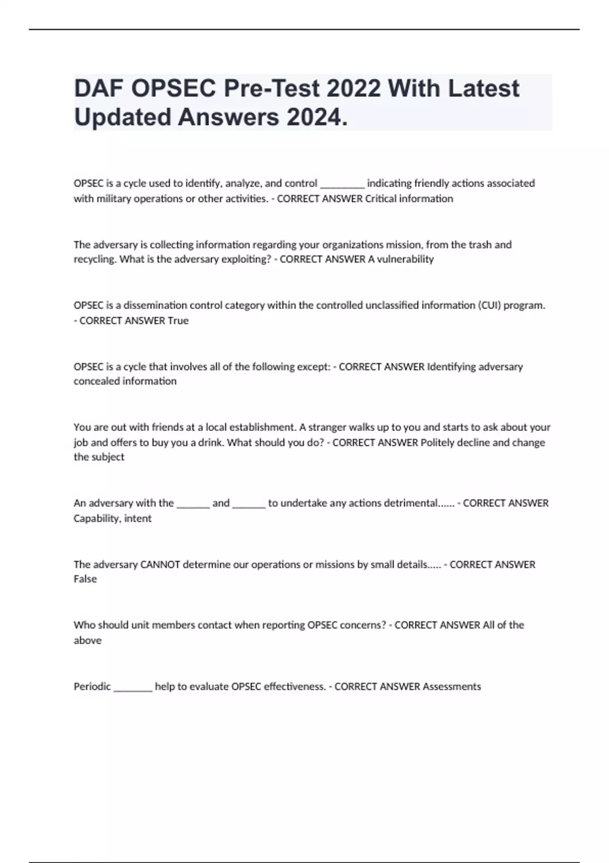 *DAF OPSEC pre-test Questions and Answers Latest Update Fully *